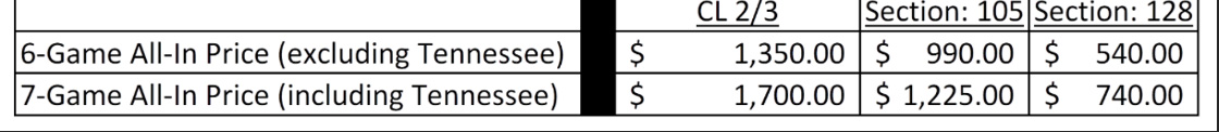 The season-ticket pricing model is for a seven-game home schedule in 2026, which would include playing Tennessee at Bobby Dodd Stadium at Hyundai Field. The model is based on: 1) this year’s cost for a season ticket for a six-game home schedule, keeping the cost relatively flat (approximately 3-5% increase) and 2) adding the seventh home game (Tennessee) at a premium price, while still offering a strong value compared to similar high-demand matchups.